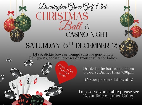 Please see flyer for Christmas ball this year Casino night & Disco Please see Kev or Juliet to reserve your table